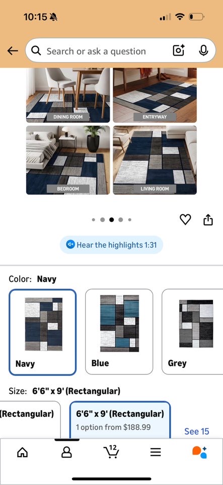 3.카페트 6.6‘x9 $70