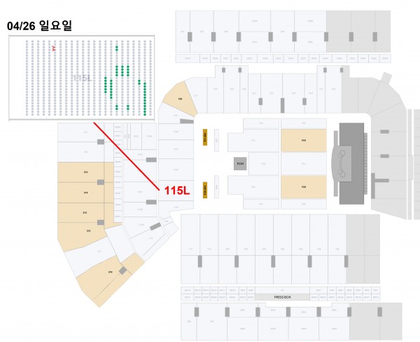 2. 좌석: 115L섹션 19열 3,4 좌석 (4월 26일 일요일) - 정확한 위치는 사진 참고