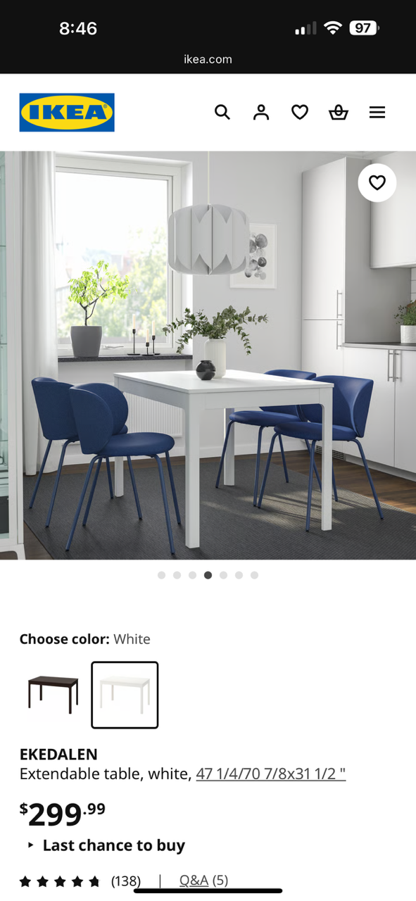 아이키아 다이닝테이블 식탁 책상 (흰색) > 중고장터