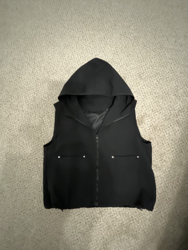 한국에서 산 프라다 천으로 된 검정색 후드달린 조끼에요.
