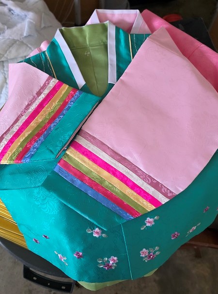 4호 남자아이 한복 5불( 소매에 약간의 얼룩있으나 손세탁 살살 하시면 없어져요)