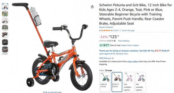 2-5세용 네발 자전거 ($20) - Schwinn Grit Bike