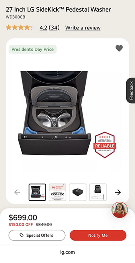 LG SideKick 1.0 cu ft Capacity 입니다