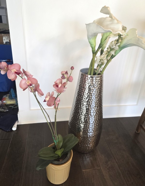 • 메탈릭 화병 & 조화 세트 ($20): 세련된 화병과 공간을 화사하게 해주는 고퀄리티 조화 구성입니다.