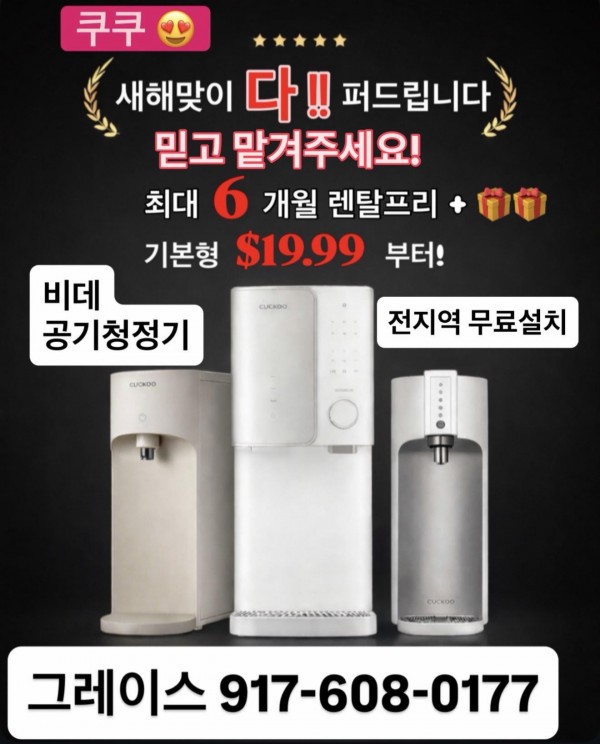 팝니다 쿠쿠정수기 월 $19.99부터! 최대 6개월 무료렌탈