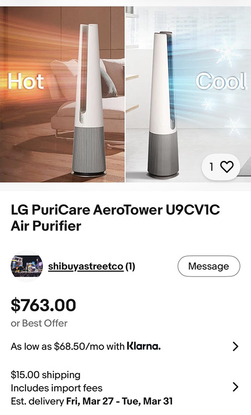 팝니다 LG HEPA UV Air Purifying Fan 팝니다.