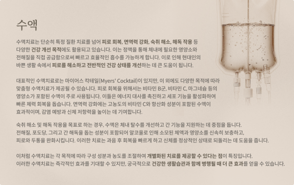 여행, 장시간 비행후, 빠른 피로 회복 비타민 수액 $145.