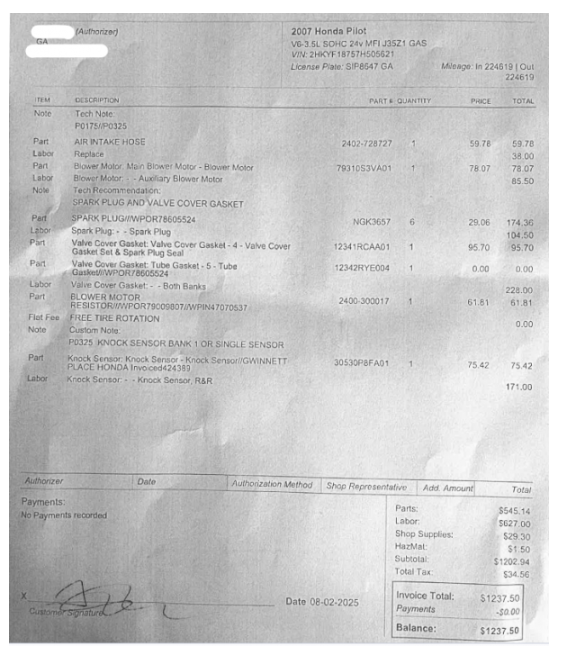 Grand Tire Shop 에서 Tune up 부터 Inside 다 정비 받았기때문에 아직 Warranty 살아있고,
