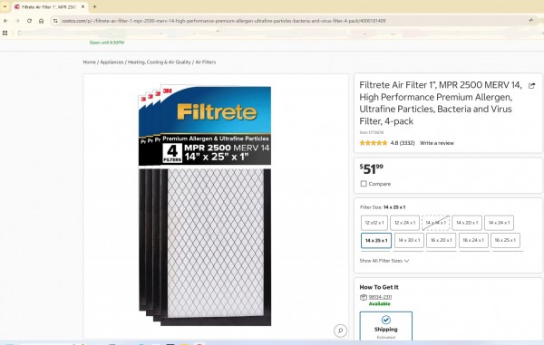 팝니다 MERV 14 퍼니스 필터 14X25 2개 $15