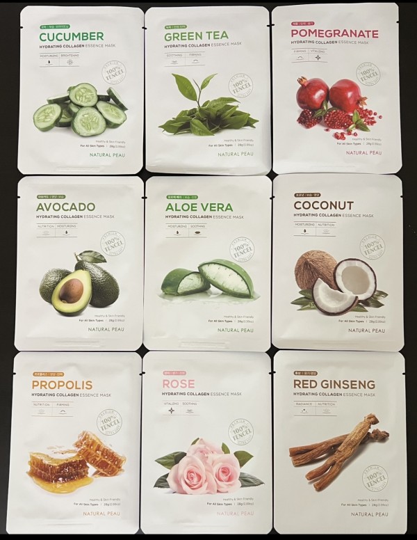 홍삼을 제외한 8종류의 마스크팩이 각각 3-4장씩 들어갑니다.