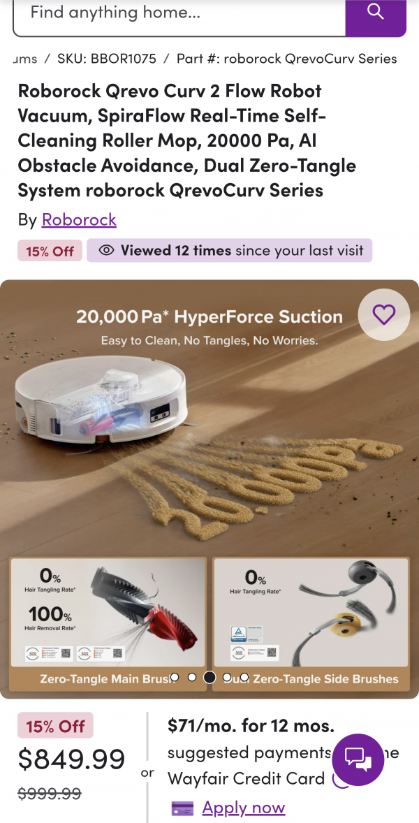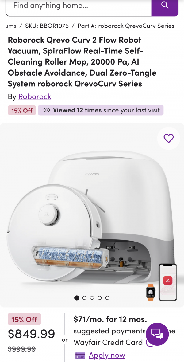 팝니다 (새제품) 베큠 & 물걸래 기능 포함된 로보락 팝니다.