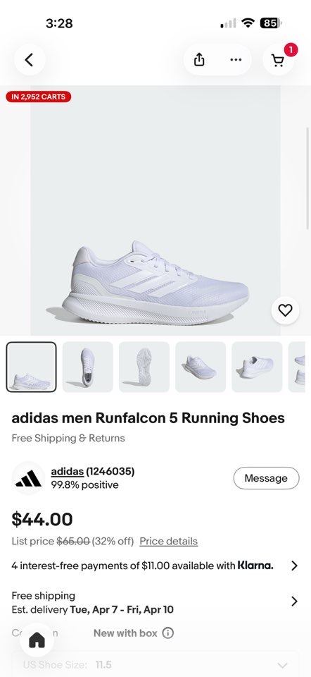 이베이 에서 $44불 , 아디디스 사이트에서 $65불에 판매중입니다