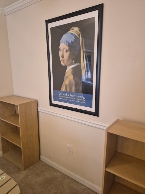 원목 침대 프레임(거의 새것)+원목 서랍장(거의 새것)+설타 매트리스(거의 새것)+ 깨끗한 전자 레인지+실내등+의자 2개+책장 2개+고급 그림 포스터 액자=$200불에 판매합니다.