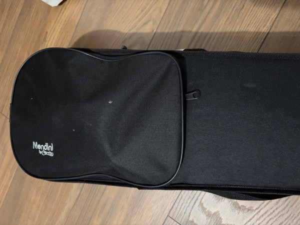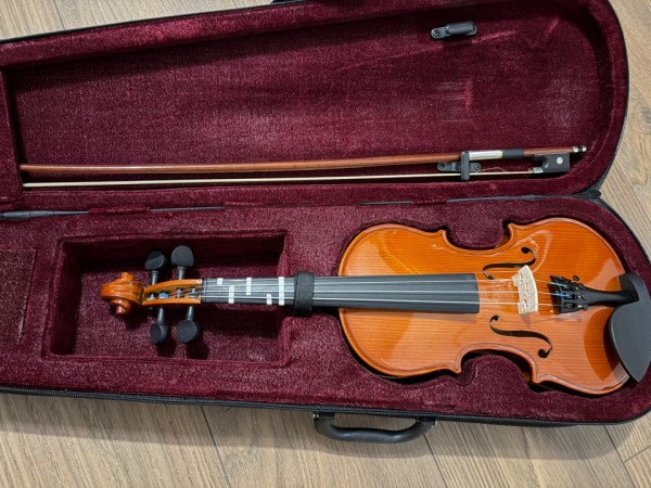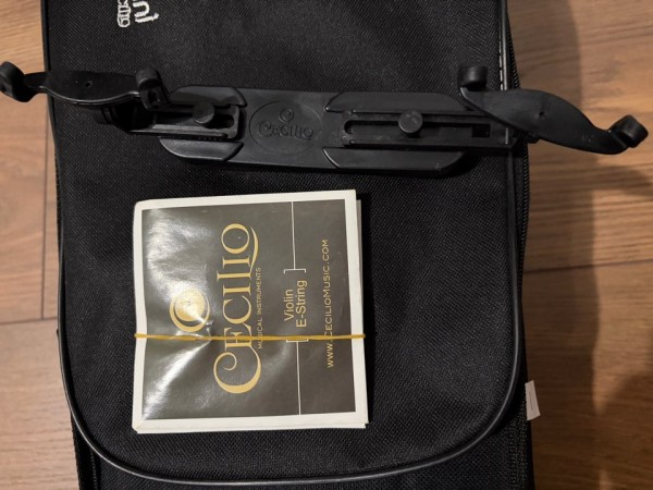 저희 아이가 처음 잡을 때 잠깐 썼습니다. 활, 어깨받침, extra 줄 있습니다. 송진은 없습니다. 30불