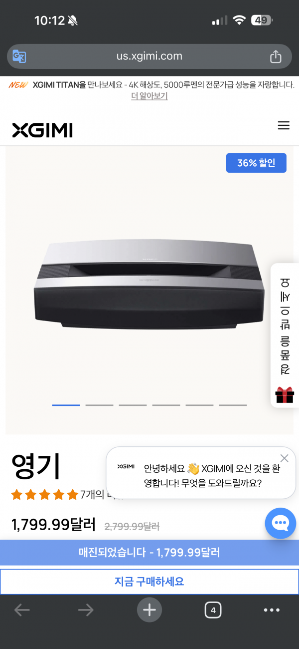 Xgimi공식홈에선 매진되어서 팔지 않고있어요