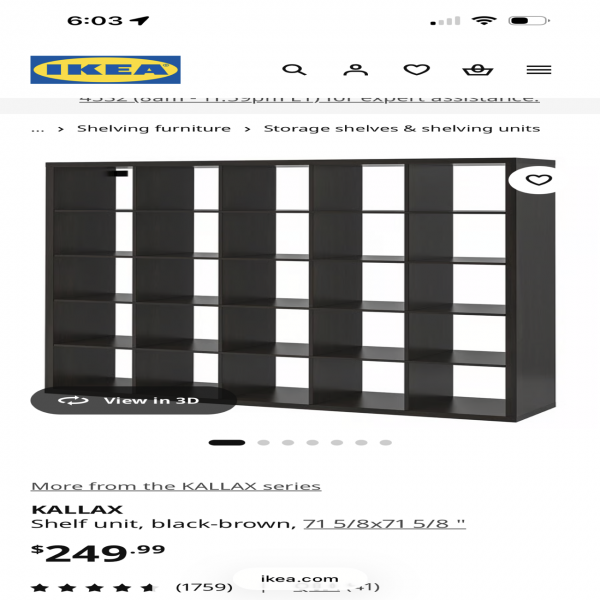 2. 아이키아 책장 5x5(다크 브라운): 100불
