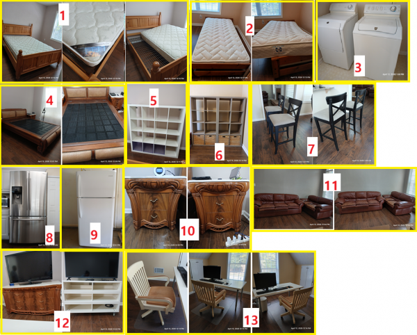 1. Queen사이즈 침대(Serta): 메트리스 + 스틸배이스 + 원목해드보드 : $70