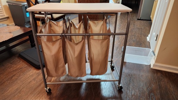 브라운 서랍장 $5, 빨래 정리함 카트 (다름질 판으로도 사용 가능) $10. 문자 부탁드립니다. 선착순 판매 합니다. 감사합니다