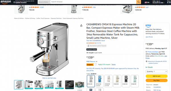 - 아마존에서 평점이 아주 좋은 모델입니다. 집에서 홈카페 시작하시려는 분이나 선물용으로 추천드려요.