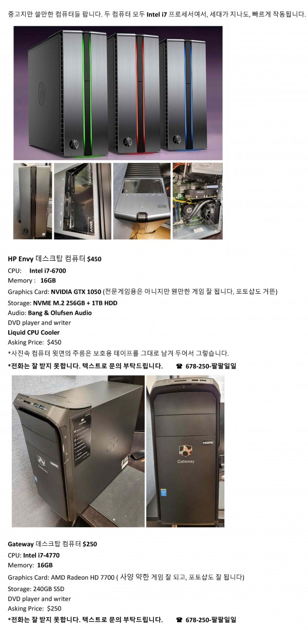 팝니다 쓸만한 중고 데스크탑 컴퓨터 팝니다. Desktop PCs for Sale