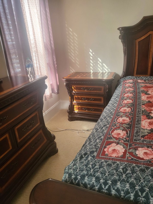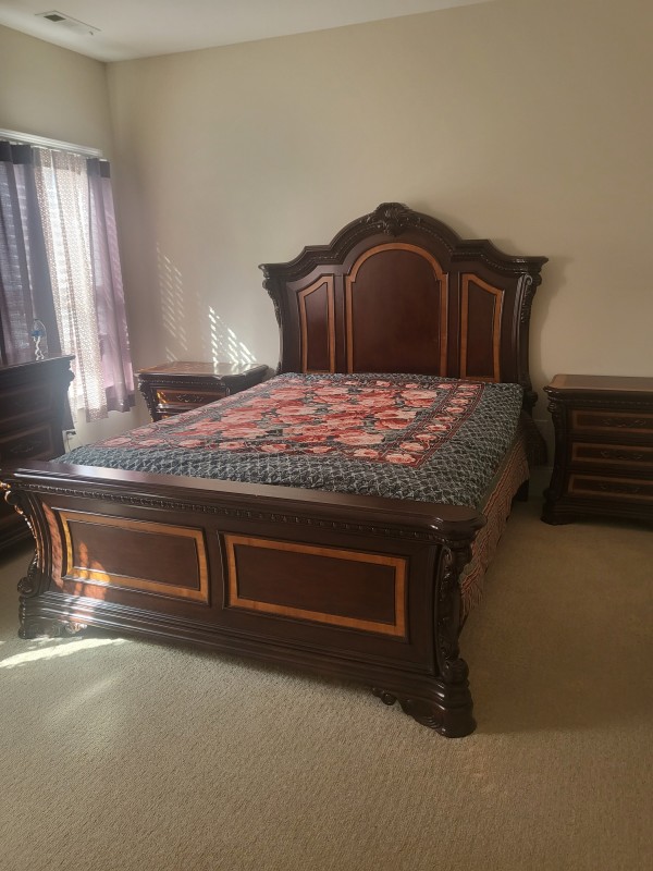 Harvertys 퀸사이즈 침대, 메트리스, 사이드테이블2개, 서랍장, 거울, 다 합쳐서 1,200불, 자세한 사진 원하시면 이메일 알려주세요 연락처 251 442 6009