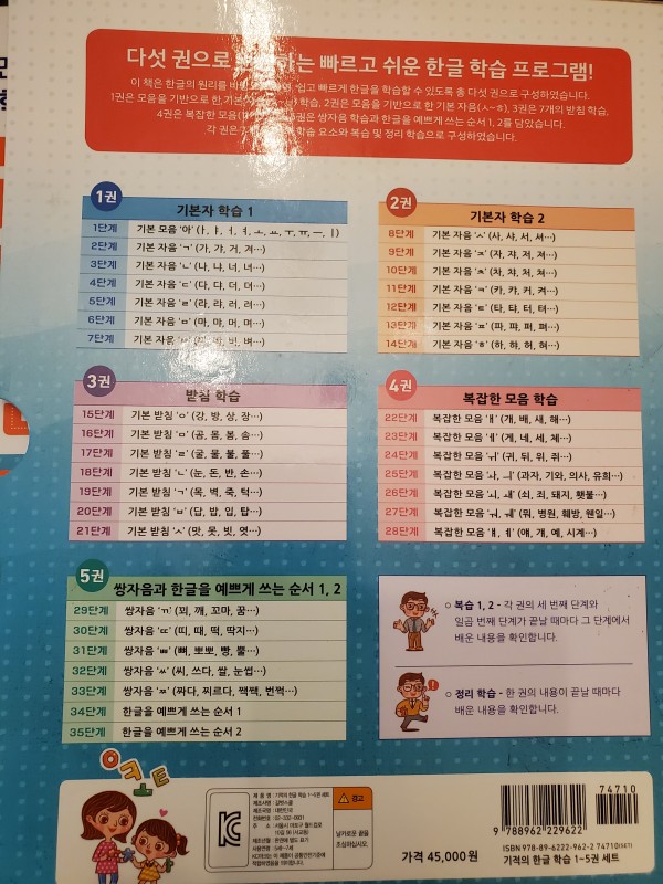 2. 기적의 한글학습 시리즈 ㅡ 15불