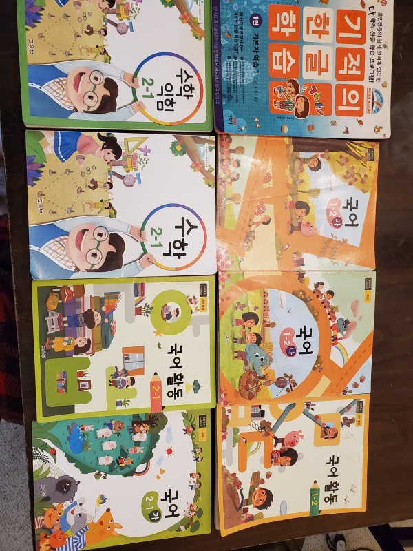 군데군데 풀긴했지만 1학년 2학기 국어,수학 책도 원하시면 같이 드릴게요. 요건 5권이요.