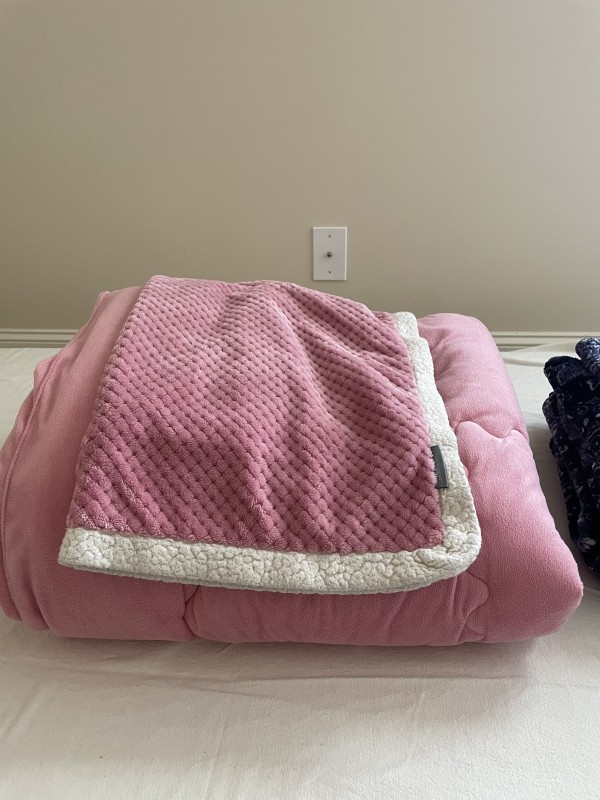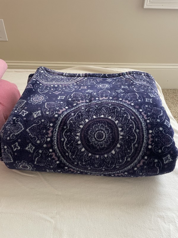 트윈싸이즈 입니다. 얇지 않고 아주 두꺼운 fleece 라 톡톡합니다. 이불로 덮어도 좋은 두께입니다.