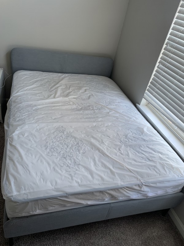 프레임은 Ikea slattum 제품이고, 매트리스는 둘루스 쪽 한인 업체에서 구매했었습니다. 침대 bedsheet 외에 매트리스 커버도 씌워서 관리해서 상태 아주 좋습니다.