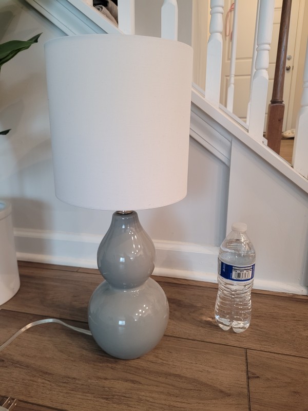 ( 갓 뒤쪽이 이사하다가 눌려서 접힌 자국같은게 낫어요 앞쪽은 깨끗해요) 램프 크기 물병이랑 비교해 보시라고 옆에 물병이랑 함께 찍었어요