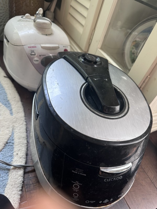 쿠쿠 밥솥 10인용 6인용. 밥하는데 전혀 문제 없고 10인용은 작년에 뉴저지 본사에서 링도 새로해서 왔습니다. 단지 뚜껑을 잡고 있어야 밥을 꺼내실 수 있어요..